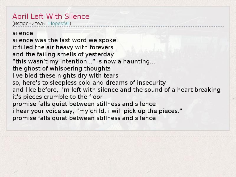 ГлавнаяИсполнителиHopesfallApril Left With Silence