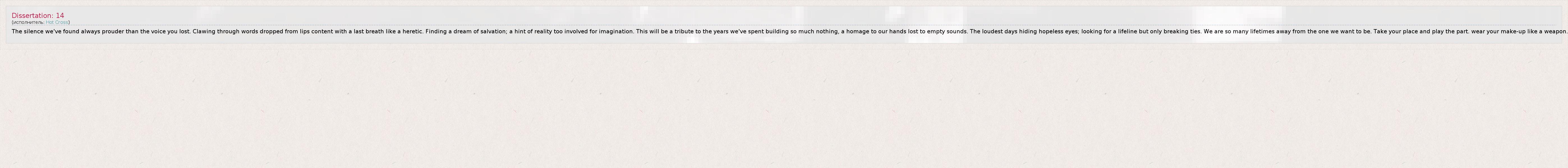 А как ты думаешь, о чем песня "Dissertation: 14" ?