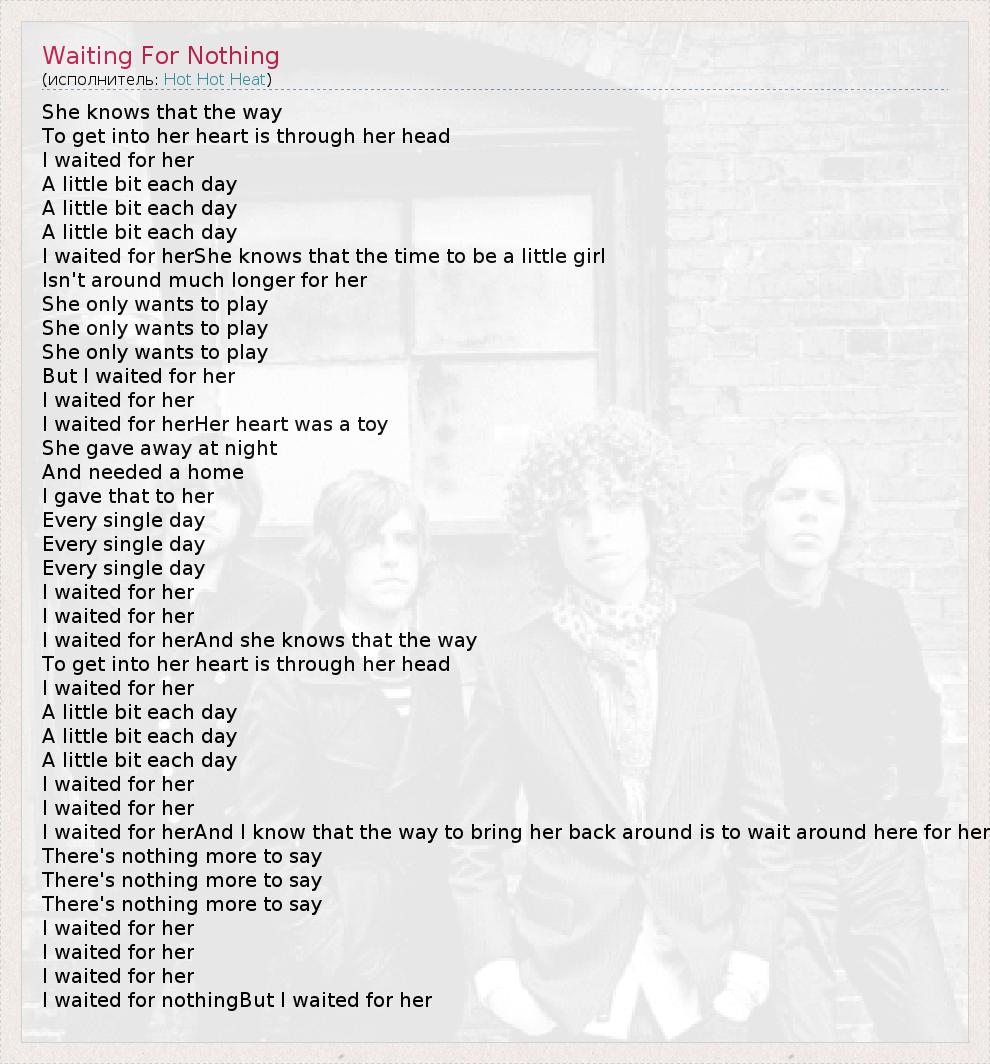 А как ты думаешь, о чем песня "Waiting For Nothing" ?