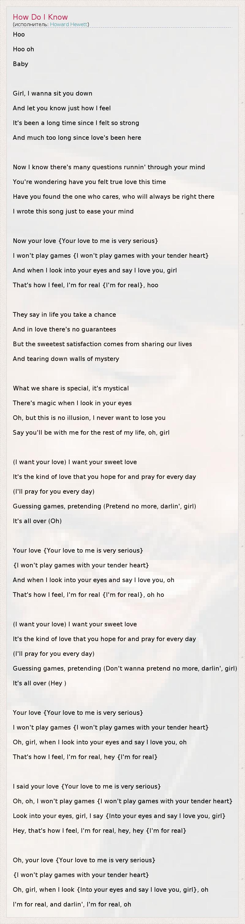 А как ты думаешь, о чем песня "How Do I Know" ?