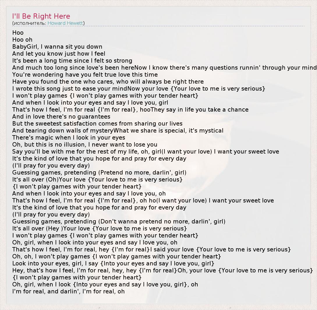 А как ты думаешь, о чем песня "I'll Be Right Here" ?