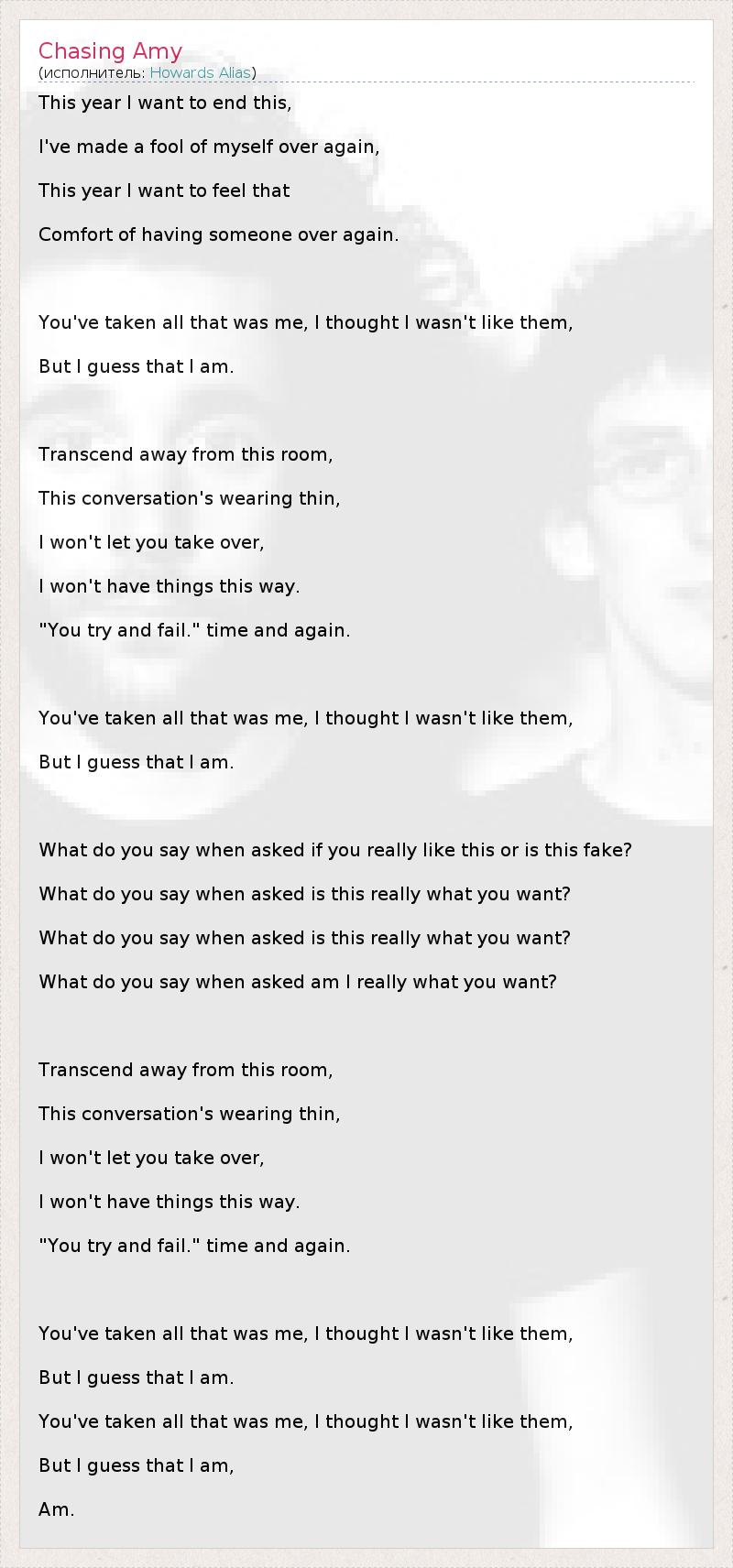 А как ты думаешь, о чем песня "Chasing Amy" ?