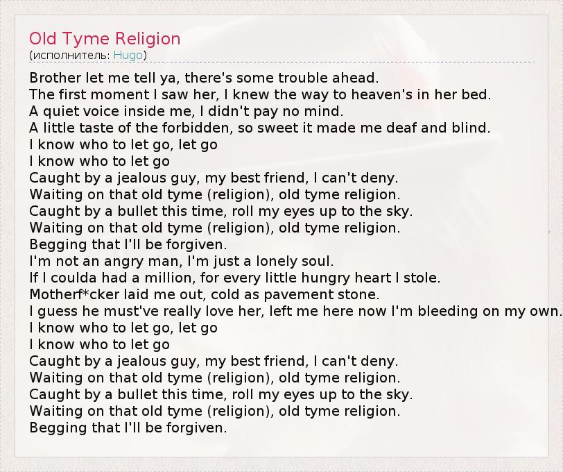 А как ты думаешь, о чем песня "Old Tyme Religion" ?