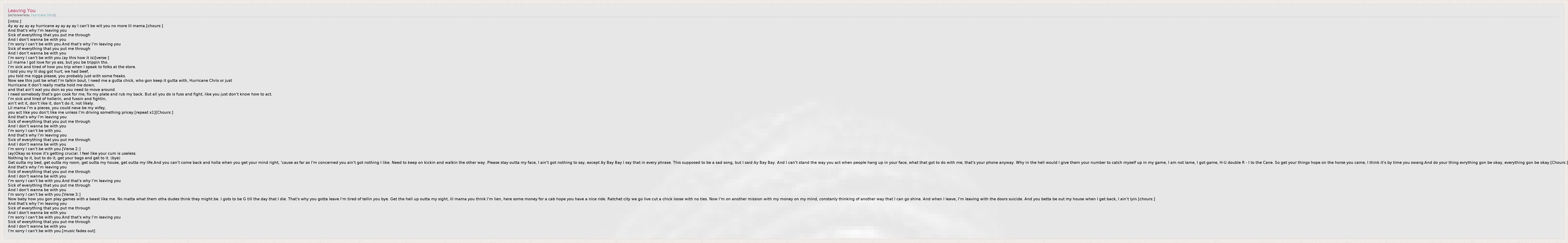 Ay ay ay ay ay hurricane ay ay ay ay I can't be wit you no more lil mama.[chours:]