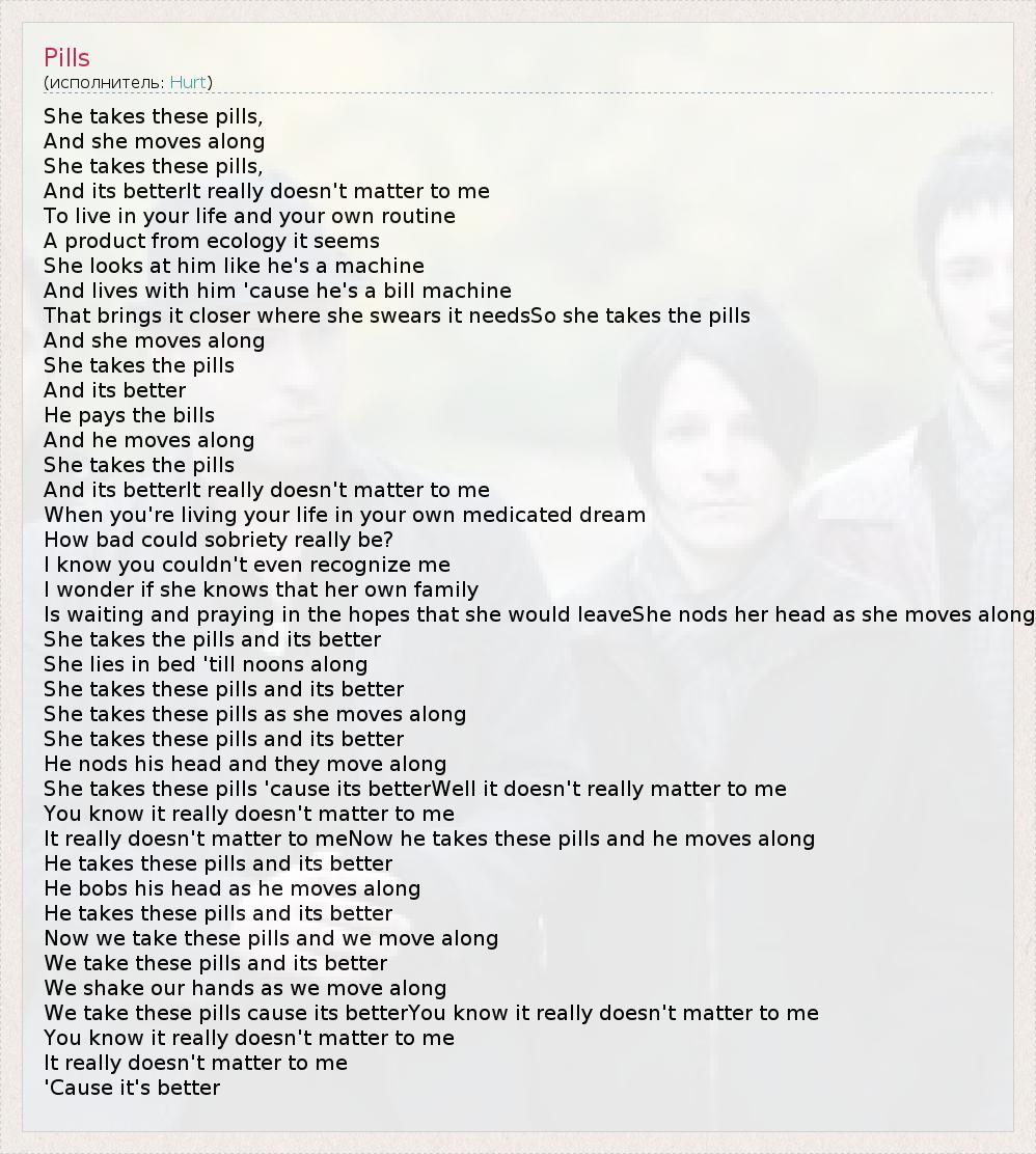 She takes these pills 'cause its betterWell it doesn't really matter to me