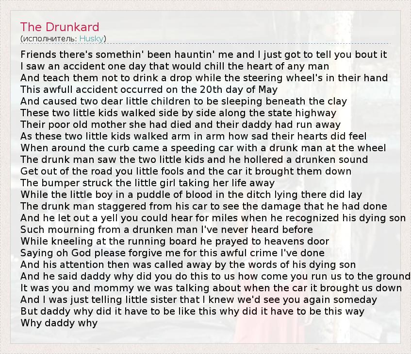 А как ты думаешь, о чем песня "The Drunkard" ?