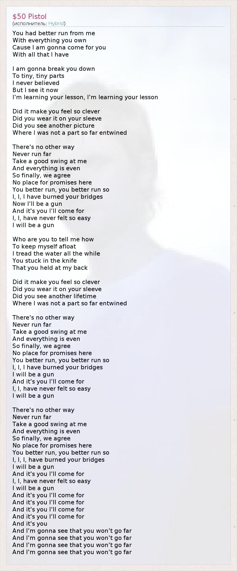 А как ты думаешь, о чем песня "$50 Pistol" ?