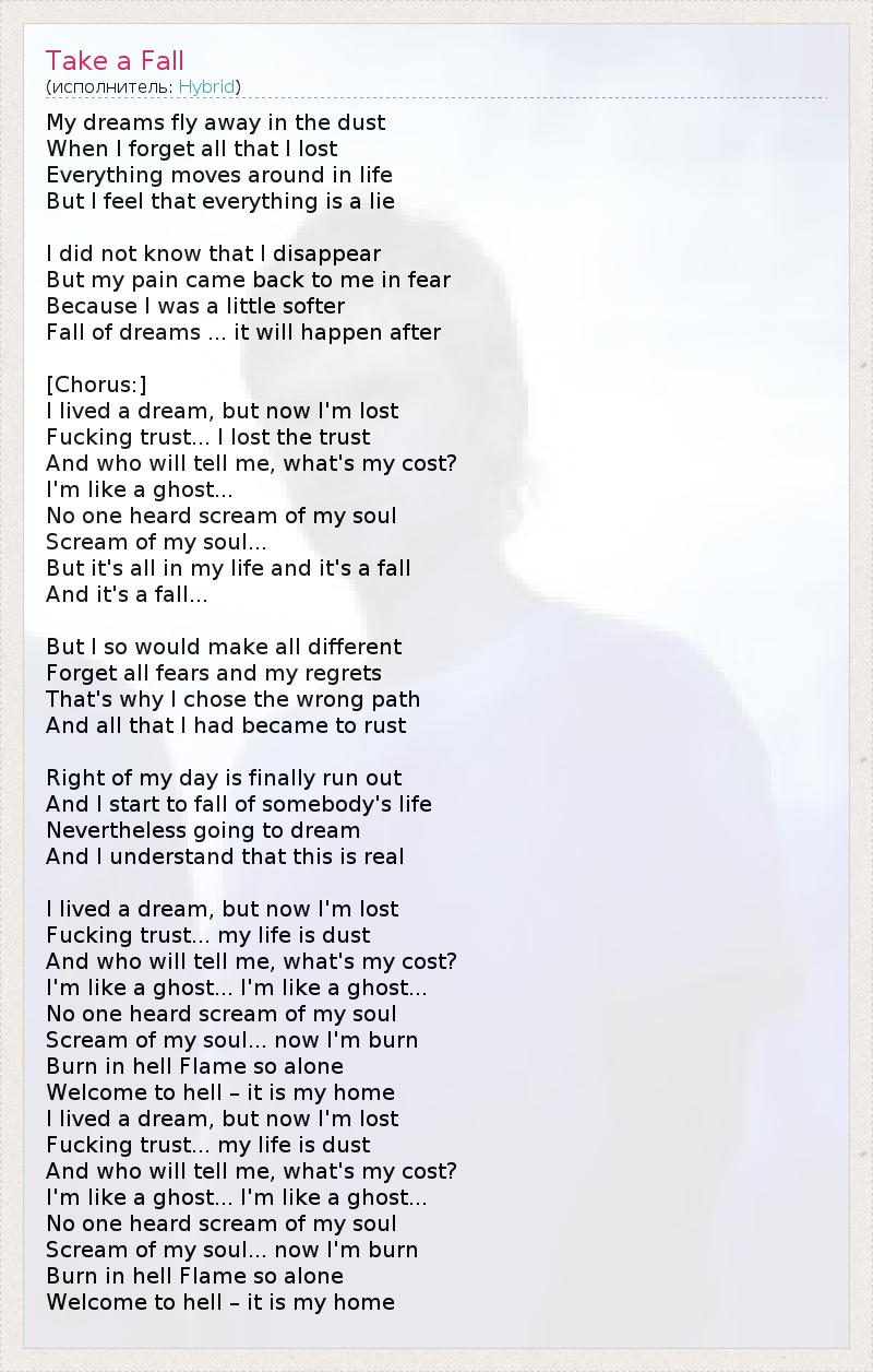А как ты думаешь, о чем песня "Take a Fall" ?