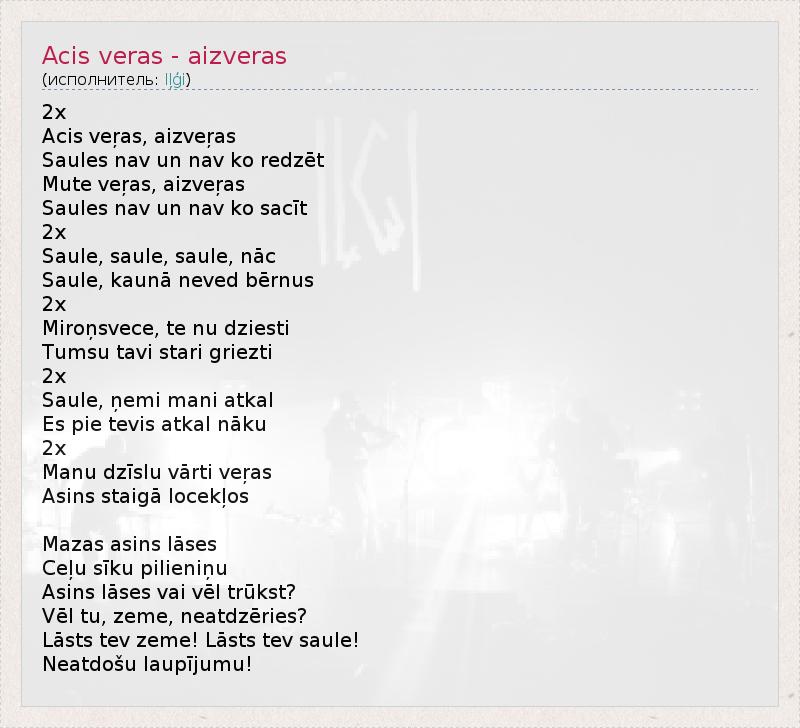 А как ты думаешь, о чем песня "Acis veras - aizveras" ?