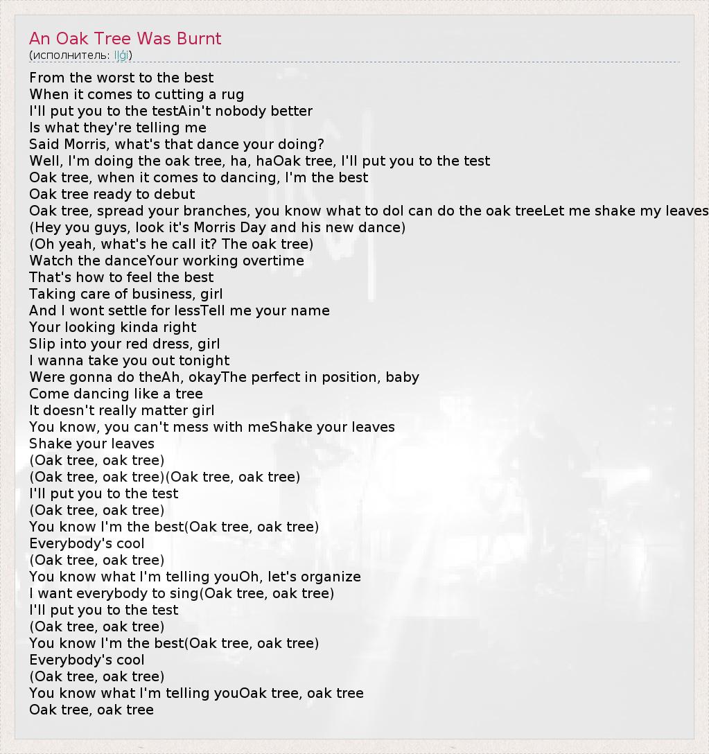 А как ты думаешь, о чем песня "An Oak Tree Was Burnt" ?