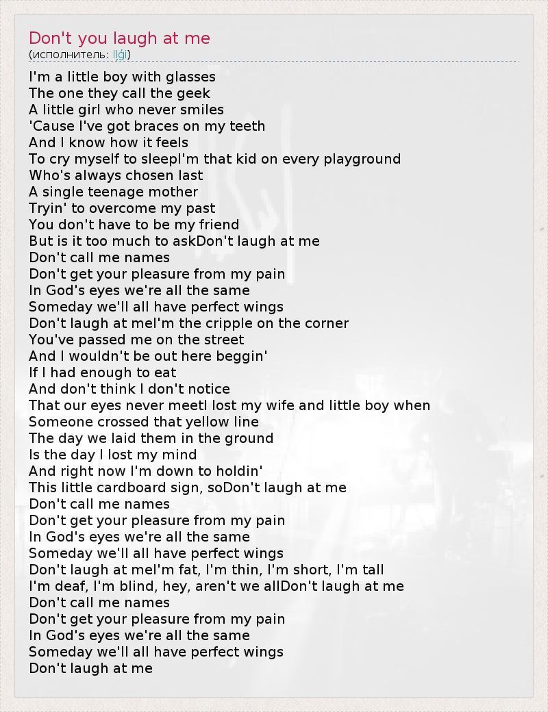 А как ты думаешь, о чем песня "Don't you laugh at me" ?