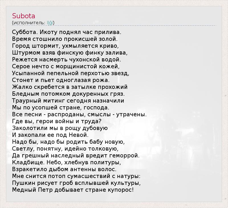 А как ты думаешь, о чем песня "Subota" ?