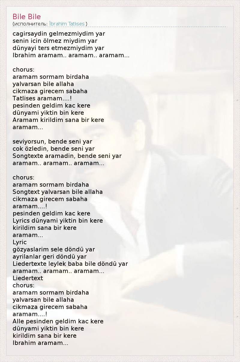 Songtext yalvarsan bile allaha