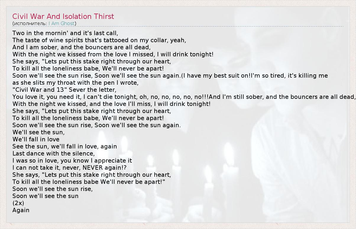 ГлавнаяИсполнителиI Am GhostCivil War And Isolation Thirst