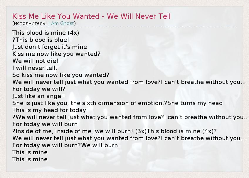 ГлавнаяИсполнителиI Am GhostKiss Me Like You Wanted - We Will Never Tell