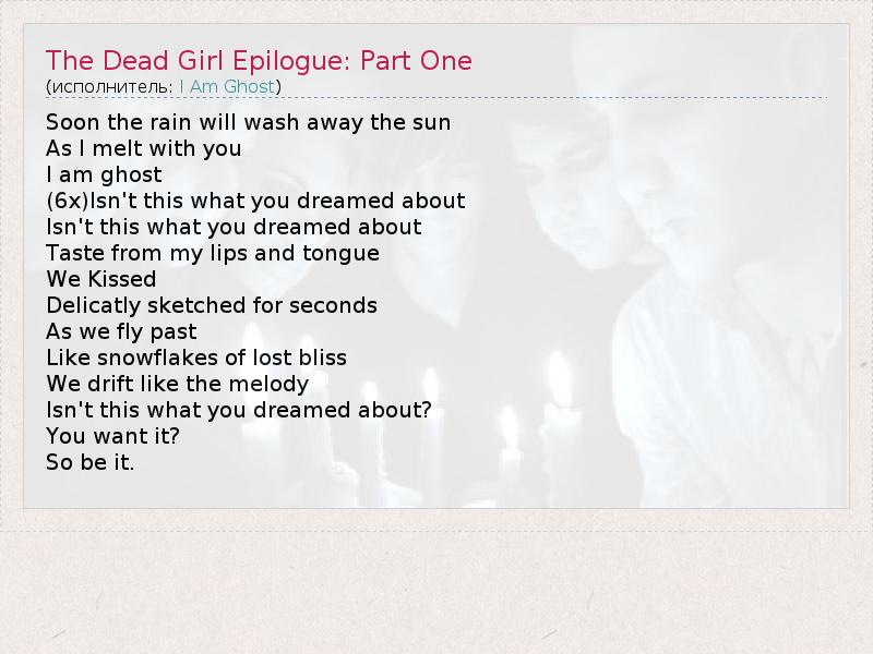 А как ты думаешь, о чем песня "The Dead Girl Epilogue: Part One" ?