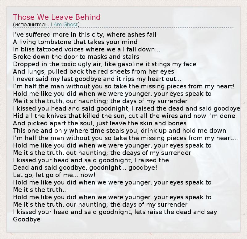 А как ты думаешь, о чем песня "Those We Leave Behind" ?