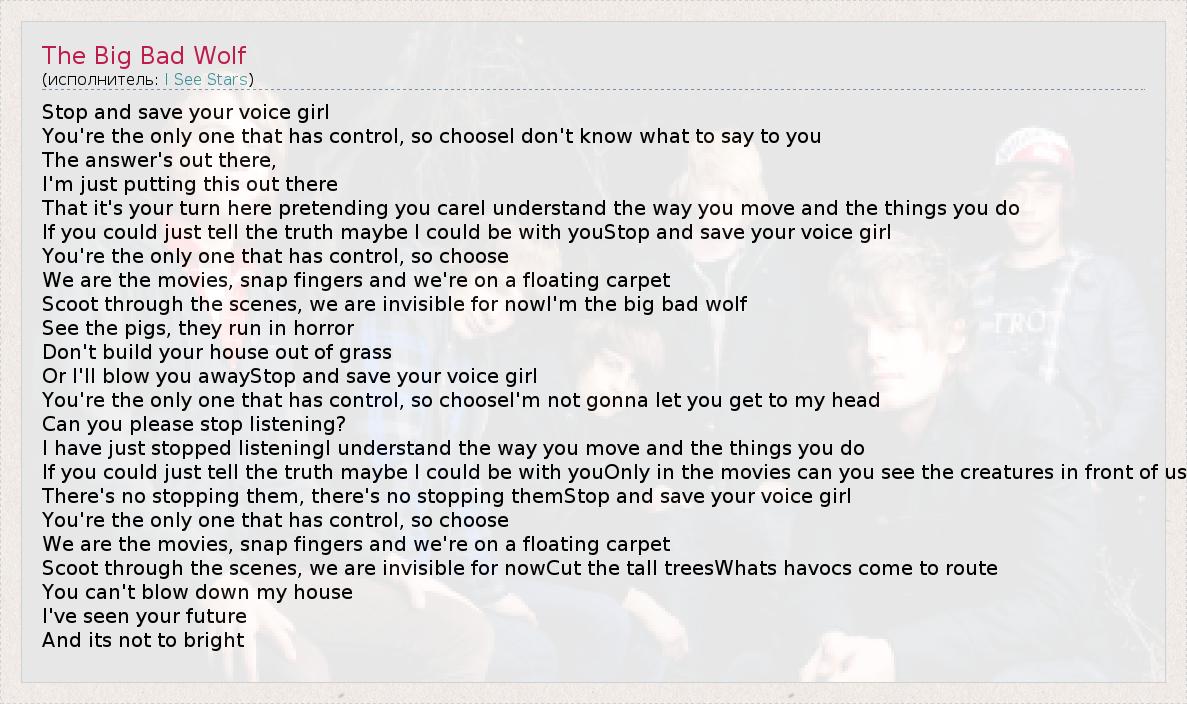 А как ты думаешь, о чем песня "The Big Bad Wolf" ?