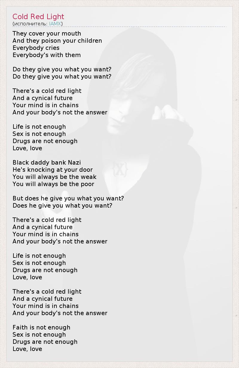 А как ты думаешь, о чем песня "Cold Red Light" ?