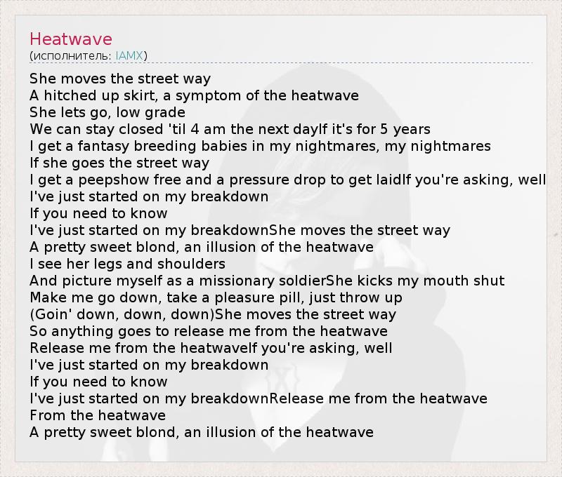 Это интересно:Оф. сайт | MySpace | Facebook | YouTube | TwitterIAMX — сольный проект Криса Корнера (англ. Chris Corner), лидера популярной британской группы 90-х Sneaker Pimps. Проживал в Берлине, в данный момент переехал в Лос-Анджелес.... продолжение