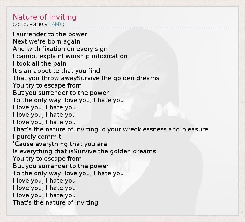 ГлавнаяИсполнителиIAMXNature of Inviting