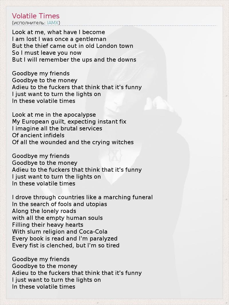 А как ты думаешь, о чем песня "Volatile Times" ?