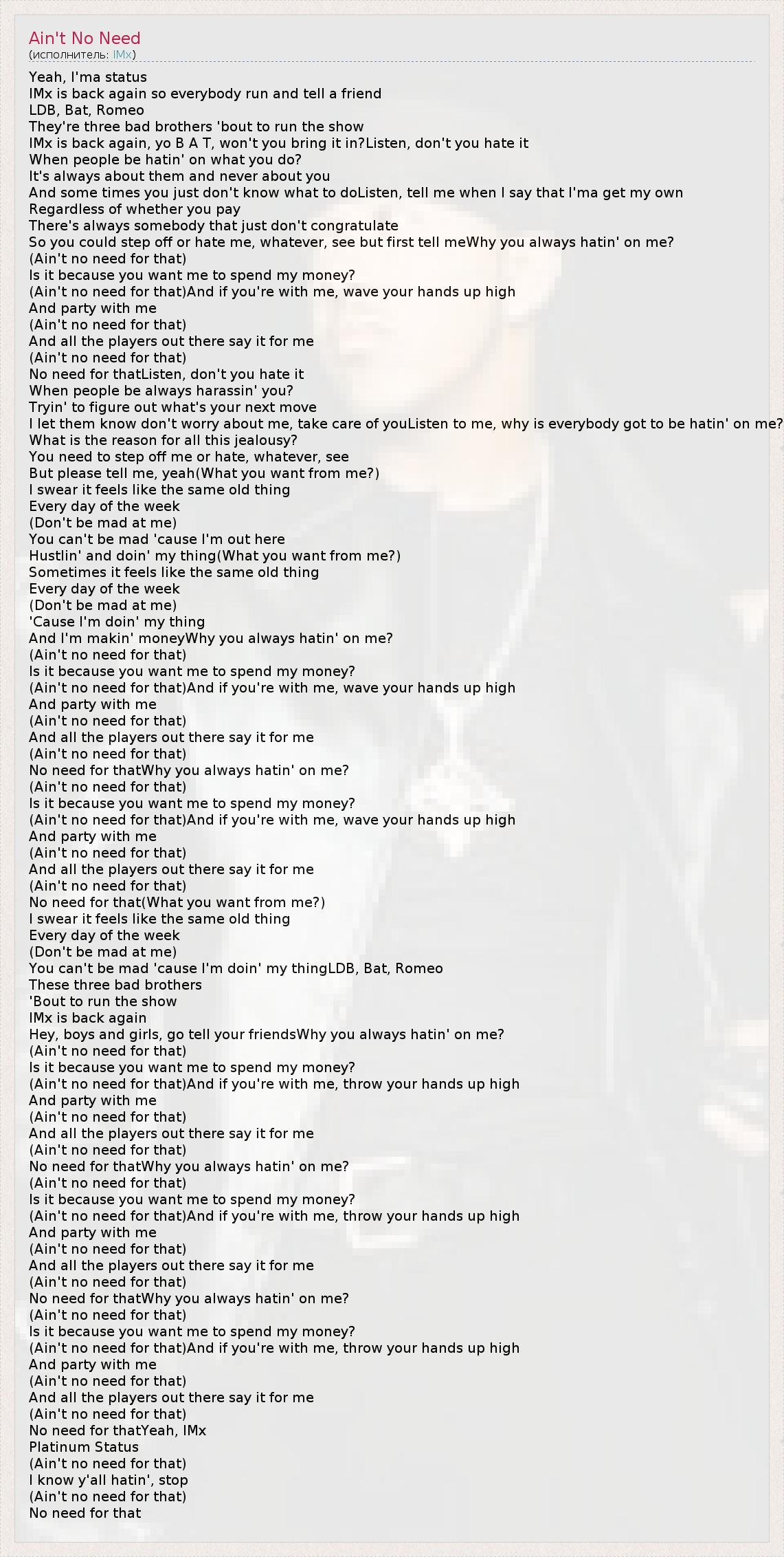 А как ты думаешь, о чем песня "Ain't No Need" ?