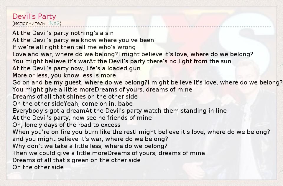 А как ты думаешь, о чем песня "Devil's Party" ?