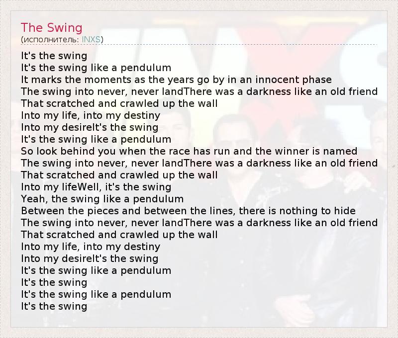 А как ты думаешь, о чем песня "The Swing" ?