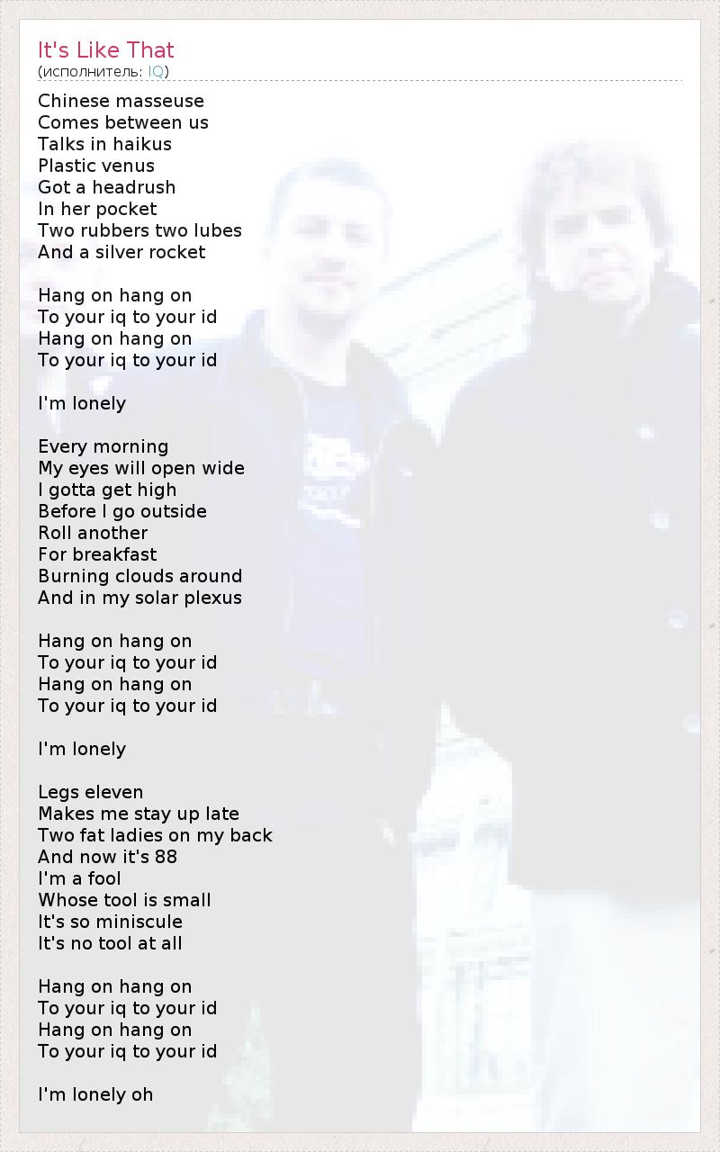 А как ты думаешь, о чем песня "It's Like That" ?