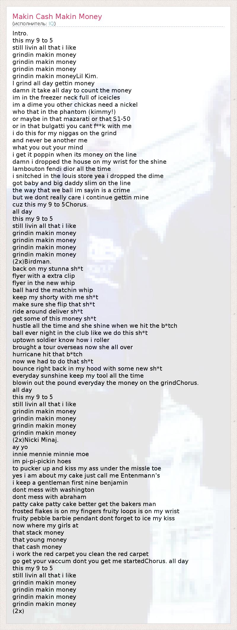 А как ты думаешь, о чем песня "Makin Cash Makin Money" ?