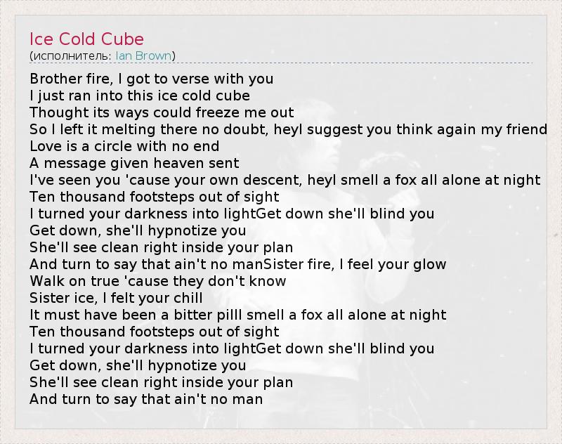 А как ты думаешь, о чем песня "Ice Cold Cube" ?