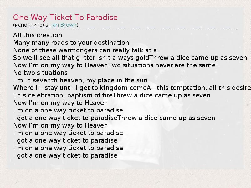 А как ты думаешь, о чем песня "One Way Ticket To Paradise" ?