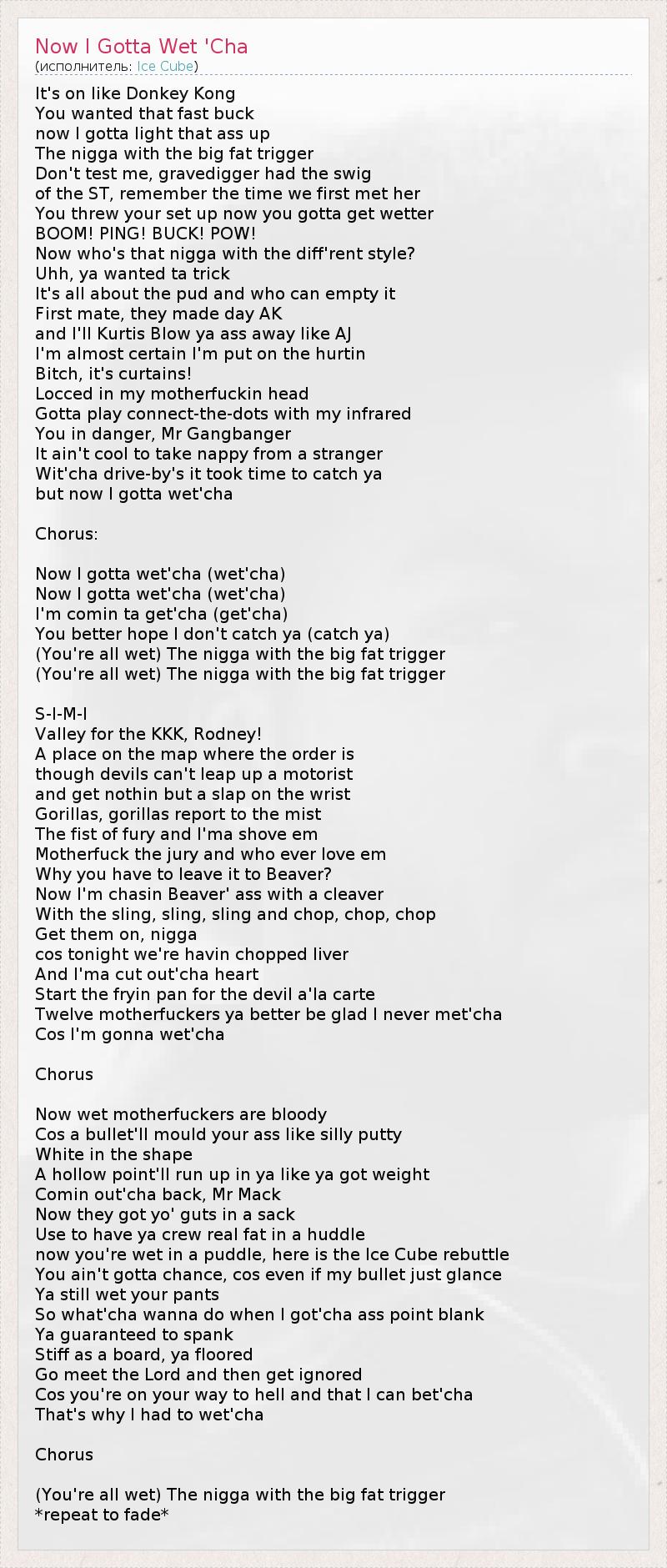 А как ты думаешь, о чем песня "Now I Gotta Wet 'Cha" ?