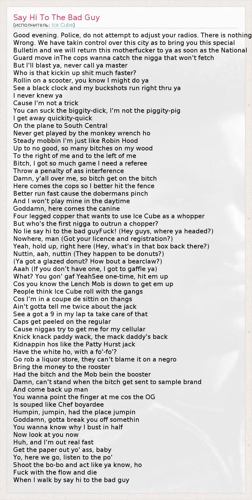 ГлавнаяИсполнителиIce CubeSay Hi To The Bad Guy
