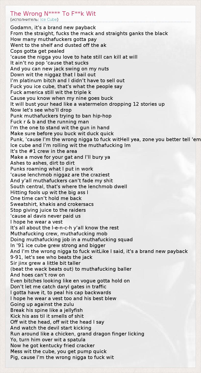 ГлавнаяИсполнителиIce CubeThe Wrong N**** To F**k Wit