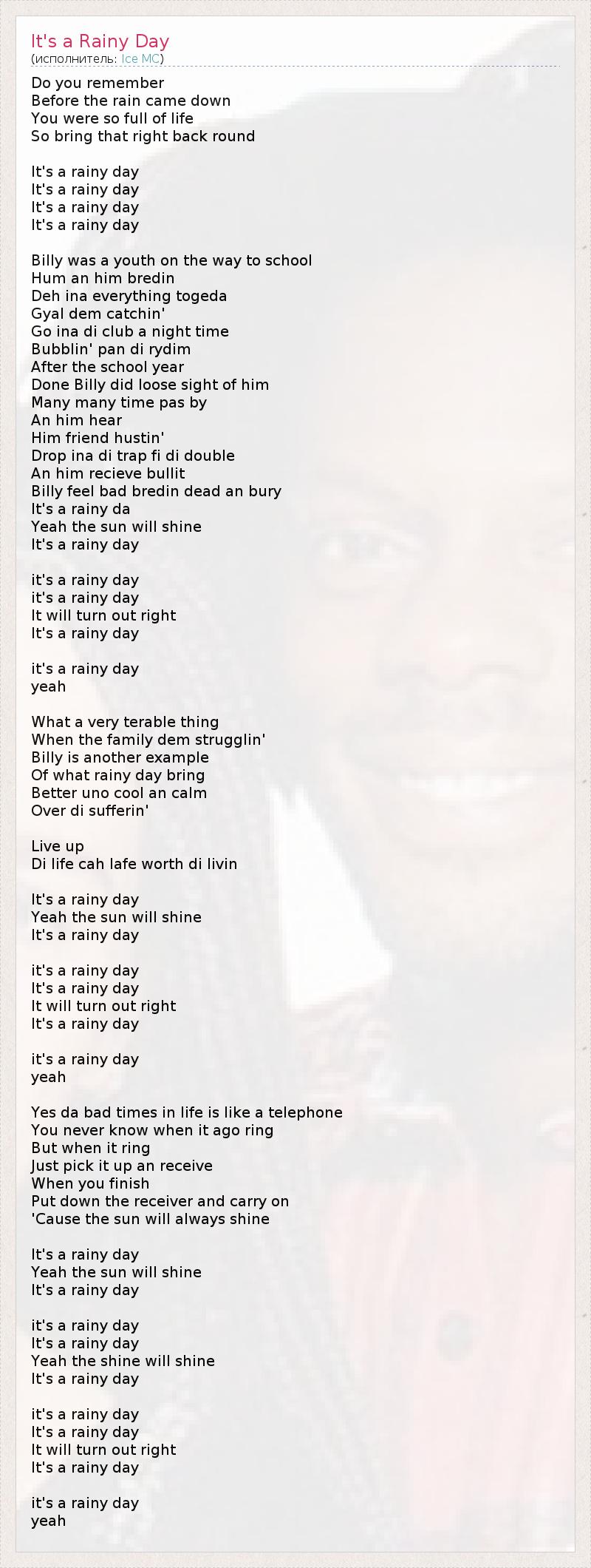 А как ты думаешь, о чем песня "It's a Rainy Day" ?