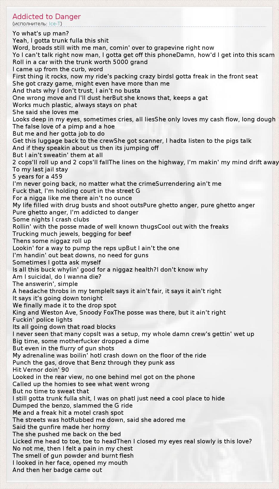 А как ты думаешь, о чем песня "Addicted to Danger" ?