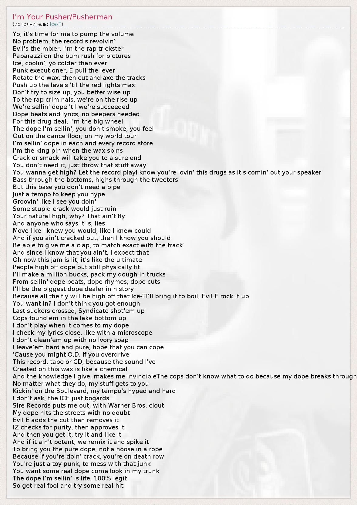 А как ты думаешь, о чем песня "I'm Your Pusher/Pusherman" ?
