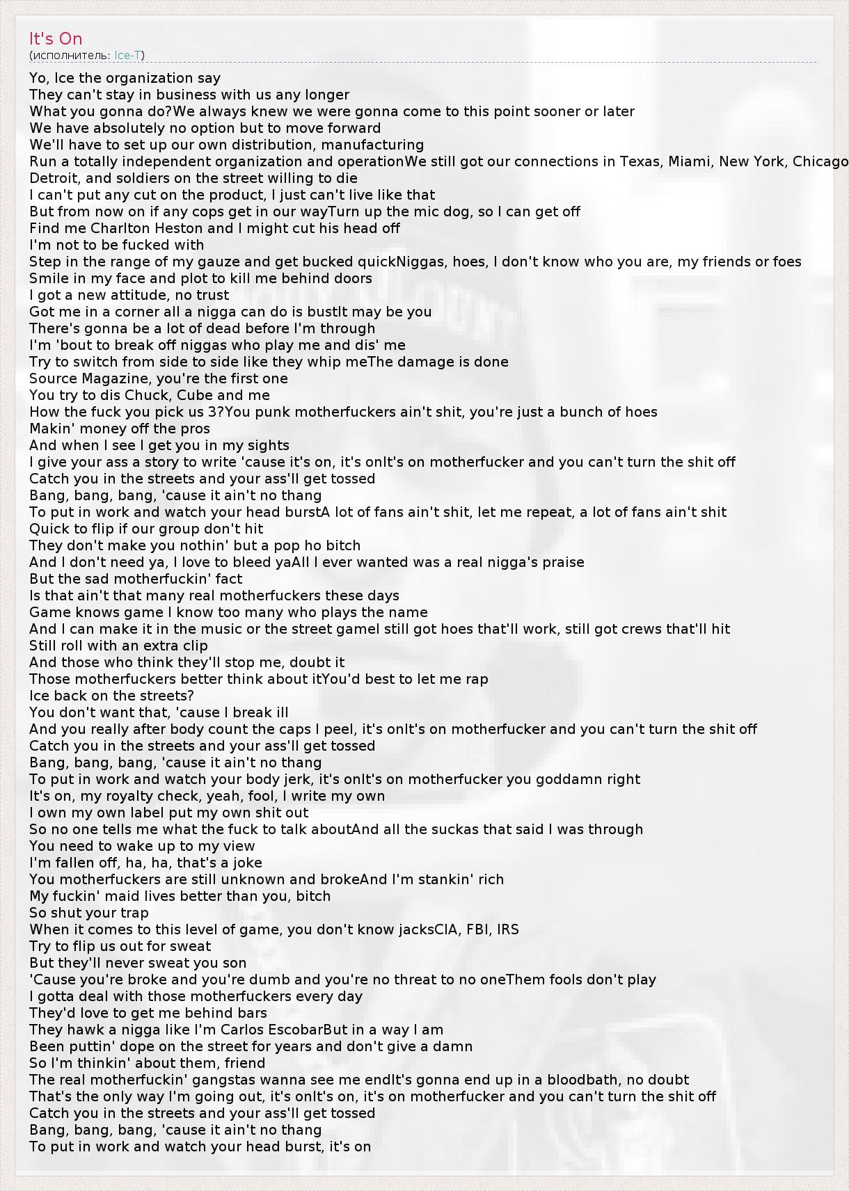 I give your ass a story to write 'cause it's on, it's onIt's on motherfucker and you can't turn the shit off