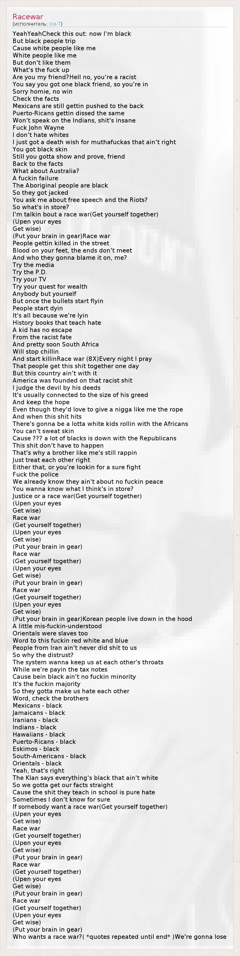 Who wants a race war?( *quotes repeated until end* )We're gonna lose