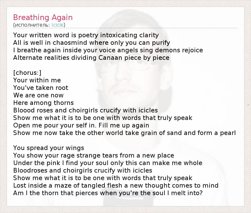 I breathe again inside your voice angels sing demons rejoice
