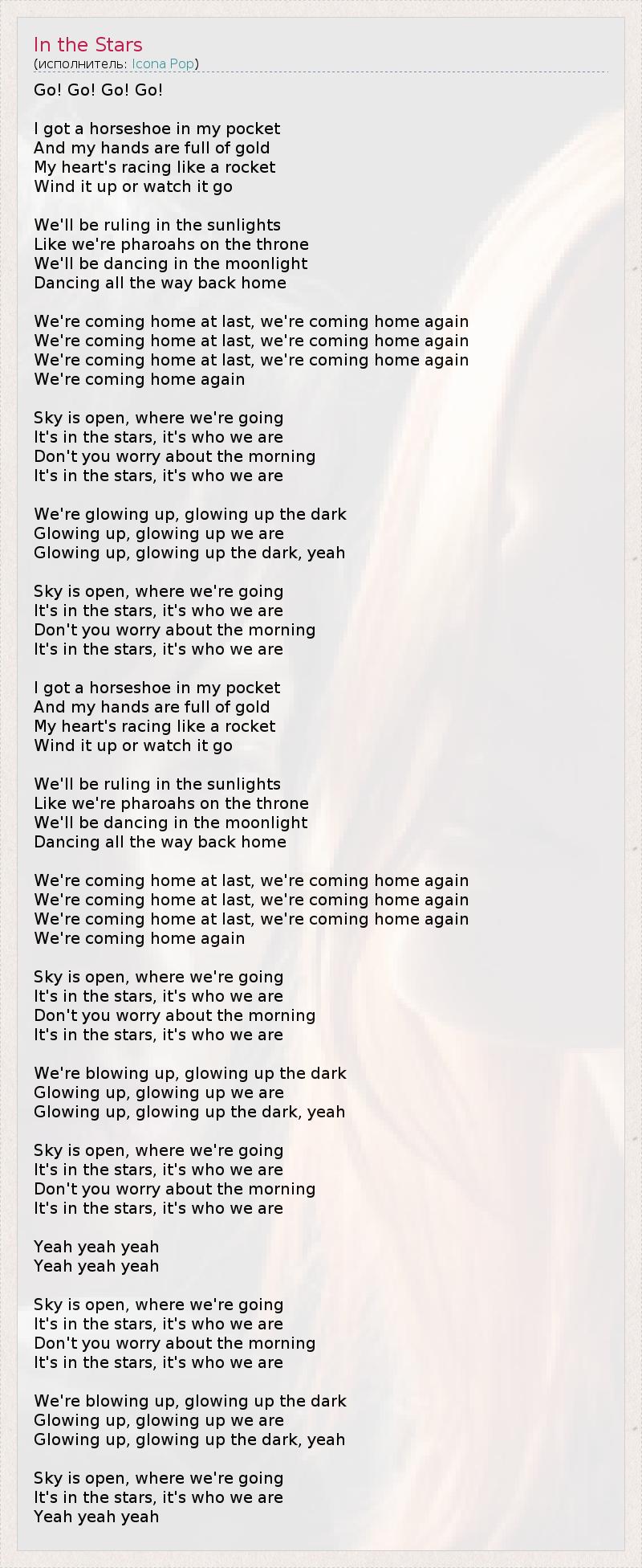Это интересно:Icona Pop — шведский электропоп-дуэт, образованный Аино Яво (Aino Jawo) и Каролиной Ельт (Caroline Hjelt) в 2010 году.Познакомившись на одной из вечеринок, устраиваемых Каролиной Ельт, девушки подружились и начали сочинять песни. В 2011 году они записали мини-альбом Nights Like This и сингл «Manners»; семпл из его припева был использован американским хип-хоп-коллективом Chiddy Bang на треке «Mind Your Manners». Весной 2012-го Icona... продолжение
