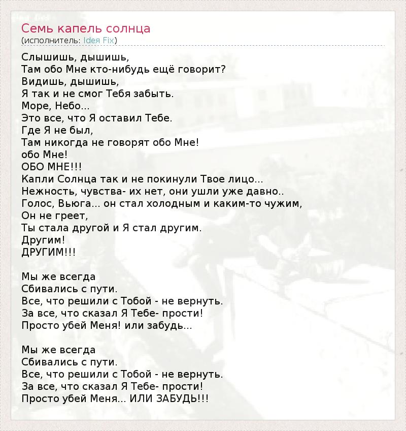 ГлавнаяИсполнителиIdeя FixСемь капель солнца