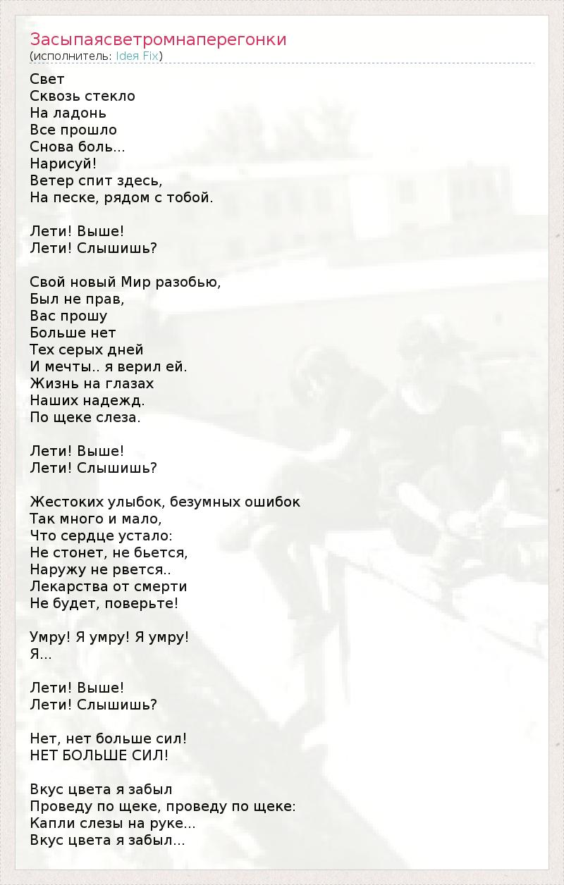 ГлавнаяИсполнителиIdeя FixЗасыпаясветромнаперегонки