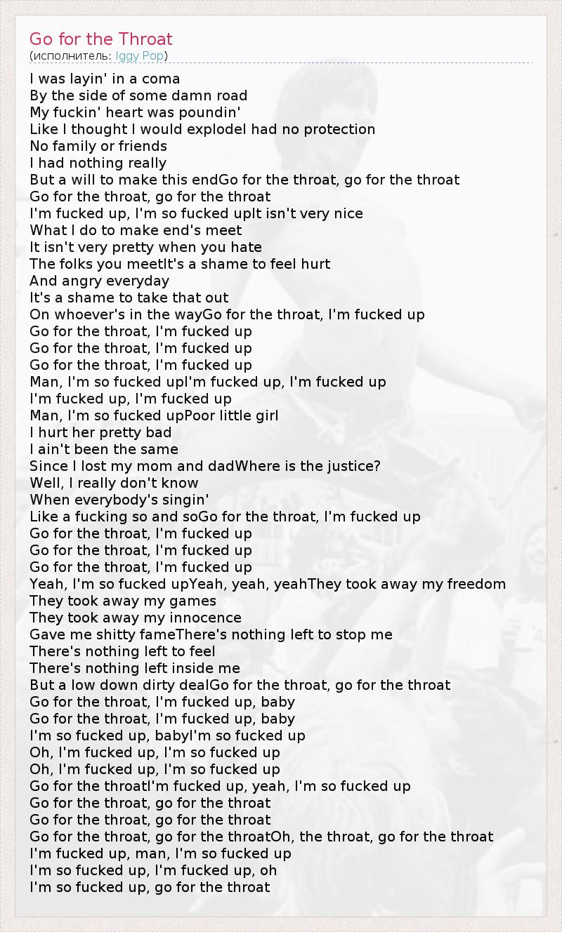 Go for the throatI'm fucked up, yeah, I'm so fucked up