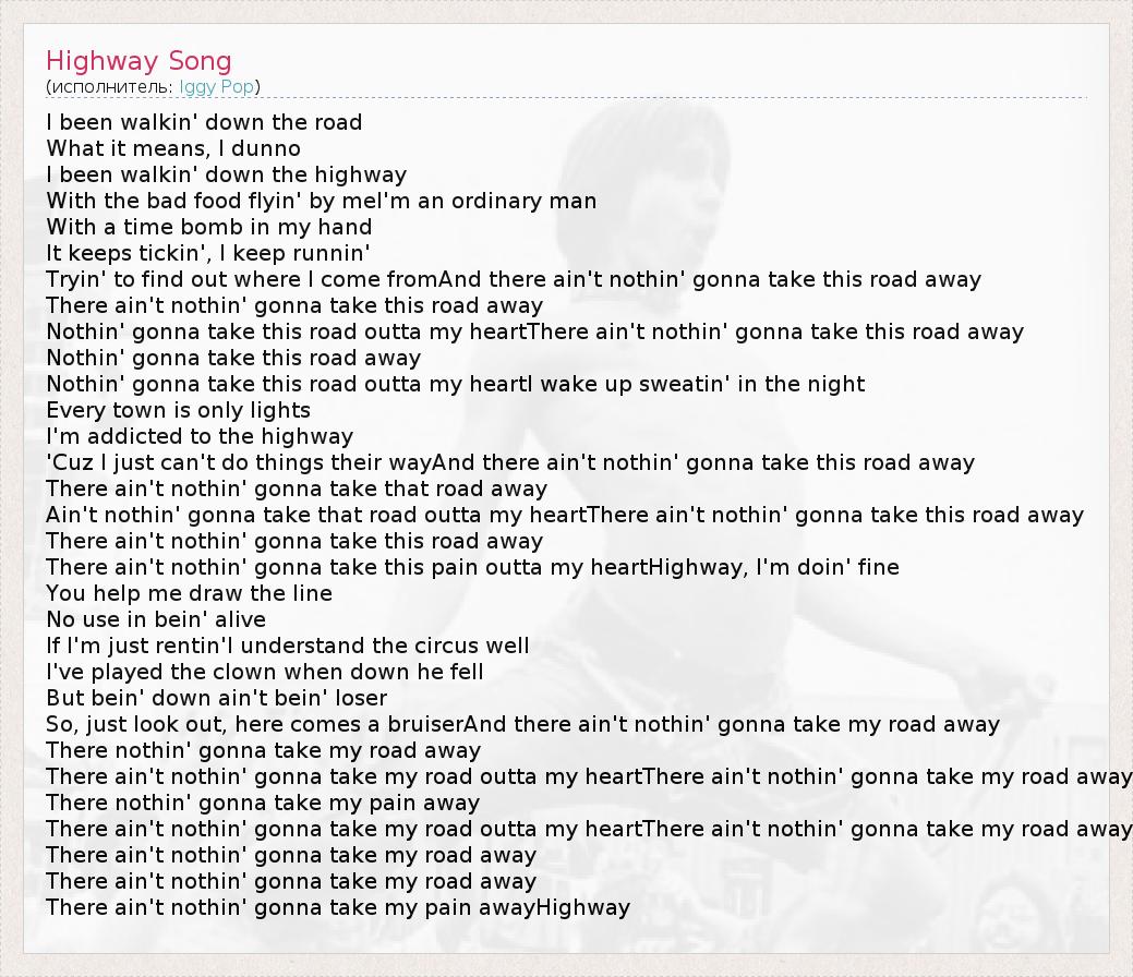 There ain't nothin' gonna take my road outta my heartThere ain't nothin' gonna take my road away