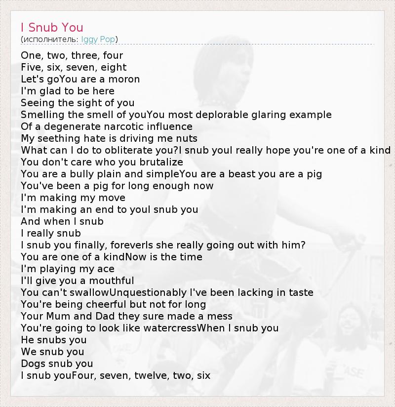 What can I do to obliterate you?I snub youI really hope you're one of a kind