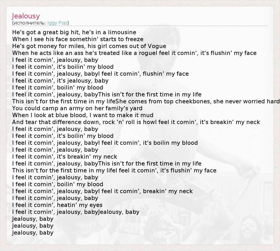 I feel it comin', jealousy, babyThis isn't for the first time in my life