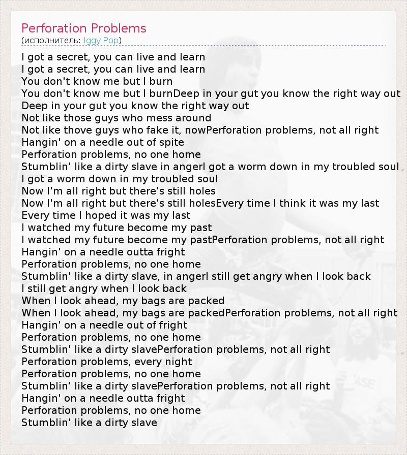 А как ты думаешь, о чем песня "Perforation Problems" ?